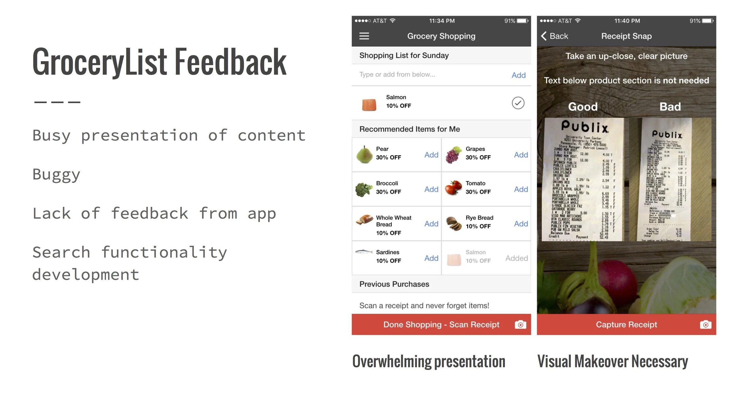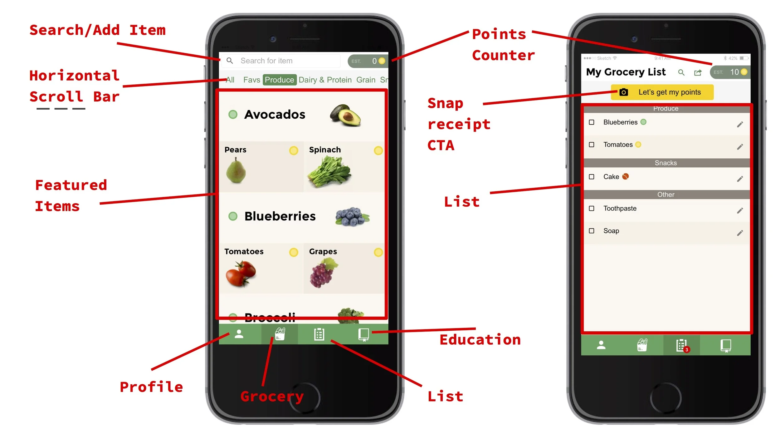 Business Goals: Get users to create a grocery list, take a picture of their receipt, and spend more time immersed in the application..