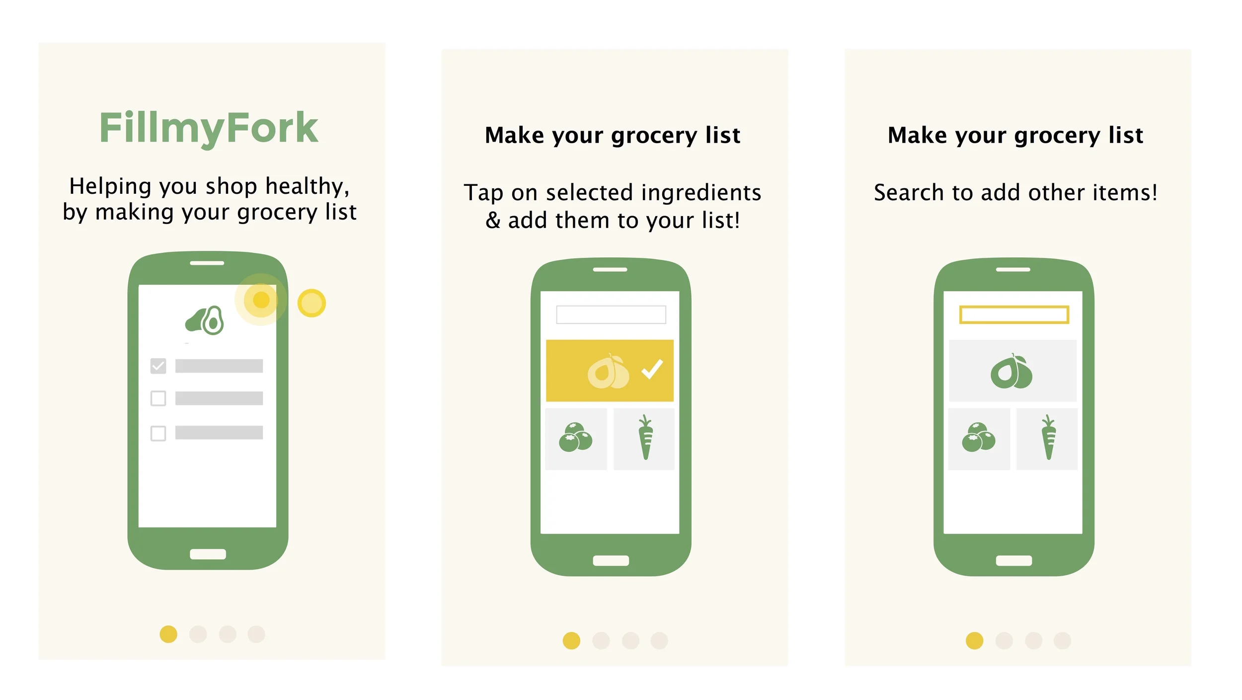 The Solution: Focus on making the grocery list creation process fun. Clearly explain the value of FillMyFork and what it provides to the user.